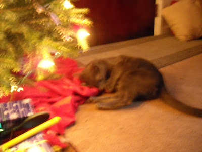 Sam got this scarf and gloves from Aunt Kathryn. Loves them! There were naturally many more gifts but I didn't photograph them all. And no one photographed me opening anything. That afternoon it began to snow.